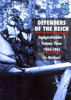 Defenders of the Reich Jagdgeschwader 1 Volume 3: 1933-1945 By Eric Mombeek Chevron Publishing, 2003 ISBN 1-903223-03-2 Softbound, 96 Pages Available from Specialty Press for $24.95 This is the third, and final, part to Eric Mombeek’s definitive study of Jagdgeschwader 1. Building on the earlier two volumes, this book finishes the war with JG 1, with Fw 190s, Bf 109s, and the Heinkel He 162. The story is told through carefully researched text and supplemented by first-hand accounts from members of JG 1. Balancing the written word is a wonderful selection of photos, many never seen before, and a selection of color profile illustrating many of the more interesting schemes worn by JG 1 aircraft. Starting in January of 1944, describes the battles over Germany, and it is with this that I find just about the only fault with this book. There are no maps included anywhere in the book, so it is up to the reader to open up an atlas and see where all of these places actually are. I think a couple extra pages in length would be more than acceptable if it meant the inclusion of theater maps. One location that few need assistance with locating is Berlin, and a section deals with JG 1’s defense of that famous city, leading up to the Normandy invasion. By the end of 1944, the writing was on the wall, but the Luftwaffe tried one last big push, and JG 1 took part in this operation called Bodenplatte. This book provides some interesting photos and drawings of JG 1 aircraft that participated in this last gasp of the Luftwaffe, some of which have not been seen before. The final aircraft flown by the men of JG 1 fills the last pages of this book, and JG 1 was unique in that it was the only operational unit to fly the He 162. While many of the photos in this section are ones published before, there are a few that are new to me, and the text provides a fascinating viewpoint from the eyes of those who flew the He 162 in combat. Overall this is a nice ending to Mombeek’s three-volume history on JG 1 and those who are interested in WW2 Luftwaffe should definitely collect all three volumes. All three are available from Specialty Press, with each order having a $4.95 shipping and handling charge. |           |