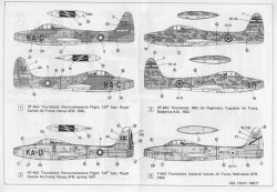 F-86L-60, 30848, 12 Sqn, Royal Thai AF, Don Muang AB, 1969 (bare metal)    48-014 F-84G/RF-84G Thunderjet Recommended Kit: Tamiya or Revell/Mongram 1/48 F-84G This set provides another interesting variety of subjects for either the Tamiya or Revell/Monogram 1/48 F-84G Thunderjet. Markings for four aircraft are provided which include: -