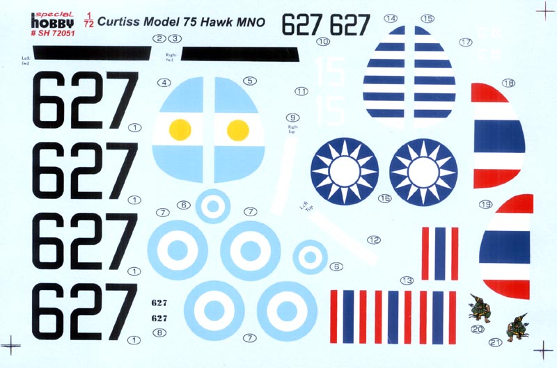 Special Hobby 1/72 Curtiss Hawk H-75M/N/O |  | The Kit This is yet another release in the MPM family of Curtiss Hawk models, this time focusing on the fixed gear export version. Much of this kit is the same as prior releases, with the obvious difference of the landing gear. There are some other differences as well, including resin parts and photoetch. You get two sprues of plastic parts, nine resin pieces, vacuformed canopy parts, a small fret of photoetch, and a decal sheet with three options. A closer look at the interior shows that there are some additions to the original release. The entire cockpit assembly is made up of resin and photoetch and makes for a much nicer looking interior, although the cockpit floor still does not have the proper curve to it. This really is not noticeable once things are together, though. Separate sidewalls, floor and bulkheads will make painting much simpler. The instrument panel is made up of resin and photoetch, with film instruments. The finished cockpit is sandwiched between the two fuselage halves. The rest of the assembly from here forward is simple. The wings come in three pieces, with a one-piece lower wing setting the dihedral. The cowling is split in two and sandwiches the resin engine face inside. Notations are included specifying the cowling variations for the different marks. The tailplanes are solid right and left pieces. The landing gear comes in three pieces, with the strut assembly split in right and left halves, sandwiching the wheel in between. Final details include underwing gun tubs, a resin tailwheel, exhaust stacks, an ADF antenna for the H-75O version, and other various antennae. The decal options are from around the world, with one from China, one from Thailand, and one from Argentina. The Chinese example is an H-75M, as seen on the boxtop, and served with the 25th Squadron, 5th Fighter Group. The camouflage consisted of dark green over a base natural metal. The green is heavily worn on the upper surfaces. Blue and white stripes on the rudder and Chinese stars on the lower wing mark the nationality, while white numbers on the fuselage sides make up the remainder of the markings. The Thai option is an H-75N flown by Sgt. Sangwan of Number 60 Squadron Pak Tai at Udon/Thani, Thailand. This plane has a two-tone upper camouflage of medium green and rust brown over neutral gray. Thai colors mark the rudder as well as the wings. An emblem is under the cockpit on both sides, with a white fuselage stripe just ahead of the tailplanes. The final option is an H-75O of Regimento Aero No. 2, Comando de Aviacion del Ejercito in Argentina. This plane is overall silver, with a bright red fuselage band and Argentinian roundels in six positions. The plane number is on the fuselage as well as on the wings in a large size. The decals themselves are well printed and have no alignment issues. The color density is good and there should be no problems with using any of these decals. Conclusion The MPM/Special Hobby Hawk family is a nice set of kits and provide a welcome addition to any 1/72 group. As a predecessor to the P-40, models of this plane help show the development into that famous fighter, and this export version has some great marking options. If you passed up the earlier Hawk kits, take a look at this one. It might be just the one you want. |          |