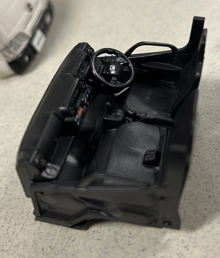 1) I gave the tires, truck bed and sides, frame, bumpers and mirrors a satin coat to reduce their shine and make them appear less toy-like.