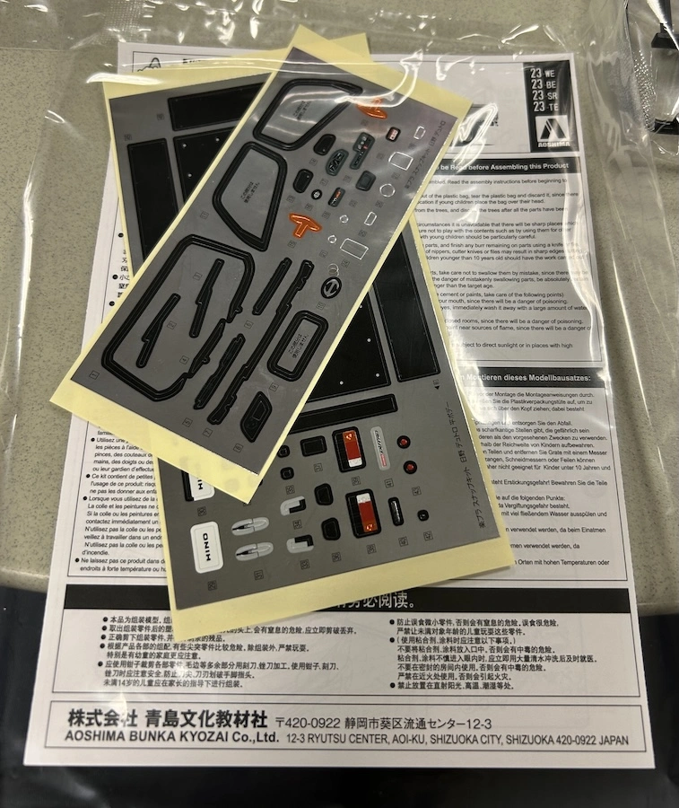 The stickers include the front faces of the windshield wipers, but the wipers themselves are integrally molded in cream as part of the cab. I used Gunze semigloss black to paint the rest of the wipers. I feel that these subtle touches enhanced the finished model. Building the kit was a piece of cake. Aoshima’s instructions were well illustrated with a simple and logical build sequence. The only issue I had in building it was that some of the stickers were so small and difficult to remove from the sticker sheets (like the lights in the bumper and some tiny bump strips on each corner of the truck body) that I opted to paint them instead.