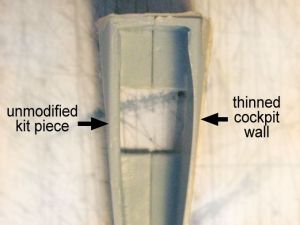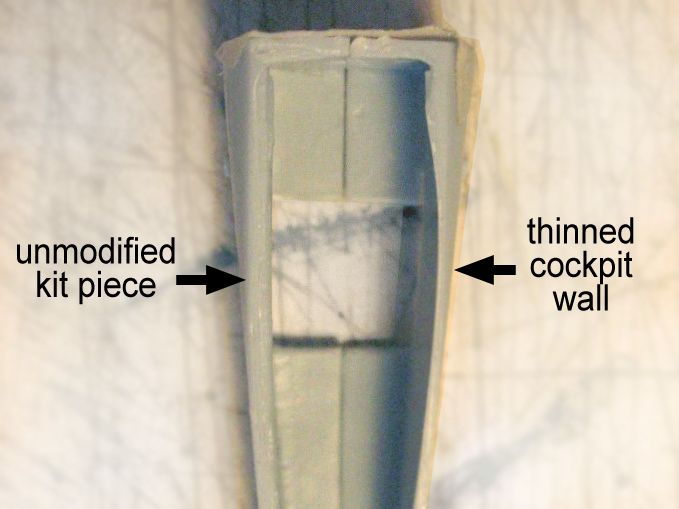 The process starts by thinning the fuselage walls to achieve a more scale appearance and having more room to add extra pieces. For this, I used a small gouge, taking small slivers of plastic on each cut. It's a slow process, since the tool may go through the wall if carelessly handled, and while fixing a hole is relatively easy, you may feel like an fool, something I'm rather used to, but that can itch if you're not practising everyday as I do.