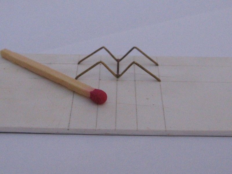 The outer wing struts were spot on in true length according to my reference drawings. Remember that a 3-view drawing won't show the struts true length because they're slanted in side and front views, but determining it is a simple geometrical trick. I refined them a little sanding their trailing edges and shaping the end pins more sharply, so they would fit the holes drilled on the wings. When the upper wing was finally assembled, they just popped into place!