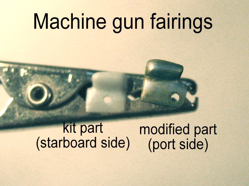 So, as you can imagine, I spent an enjoyable afternoon changing the shape of this 3mm plastic chip, which ended glued to the side of the fuselage, as if the machine gun would have a large artificial ear.