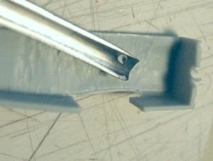 The tail surfaces are thin, with near-perfect surface details. A thick coat of paint may obliterate the contours of the structure molded on the surface! I drilled a tiny hole where the rudder fin will be attached to the stabilizer, cut the control surfaces and cleaned up all its edges. I added control horns to the rudder (you may choose a few shape options here as well) by cutting a thin slot in it and adding a piece of thin, black styrene across its edge. I left the styrene larger than needed so as to have a handle to paint (a white basecoat) and decal the rudder. When all was finished I cut the final shape of the control horns with a new #11 blade.