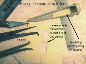 Given the relatively sparse cockpit of the kit, I chose to detail the interior with some scratchbuilt items -and complicating my life !-.