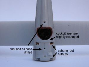 I drilled 4 holes for the undercarriage in the fuselage belly.