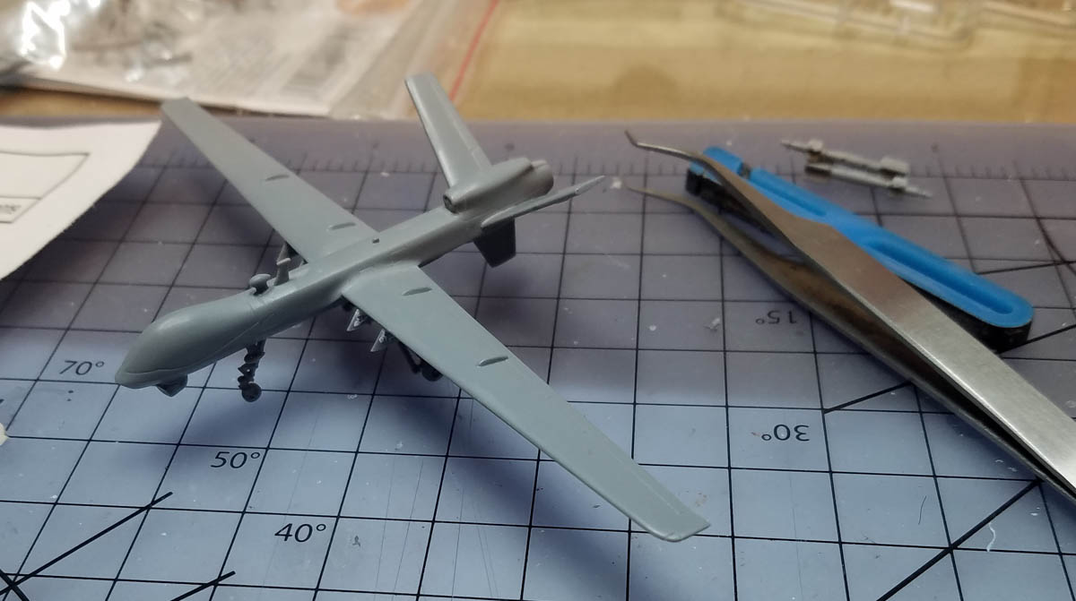 I wrote a First Look on the Minwing Reapers sometime ago and they've been out for a few years. You have your choice of either buying two-in-a-box, or a single, bagged version with decals for only one aircraft (refer to my First Look to see what's in each package). Either way, you're receiving a very nicely molded model of the General Atomics MQ-9. For this article I built the bagged, California ANG version.
