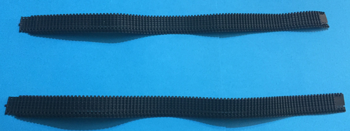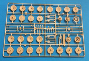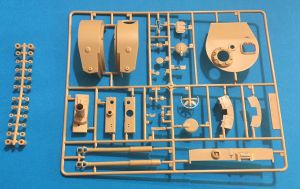 The tracks are the old, one-piece vinyl tracks that many manufacturers have abandoned for more accurate, individual link tracks. When I say more accurate, I mean that individual link tracks not only have greater detail, but they also "sag" over wheels and sprockets in a more realistic manner. The vinyl tracks are well detailed, and they are certainly adequate for modelers who are intimidated at the prospect of building individual link tracks.