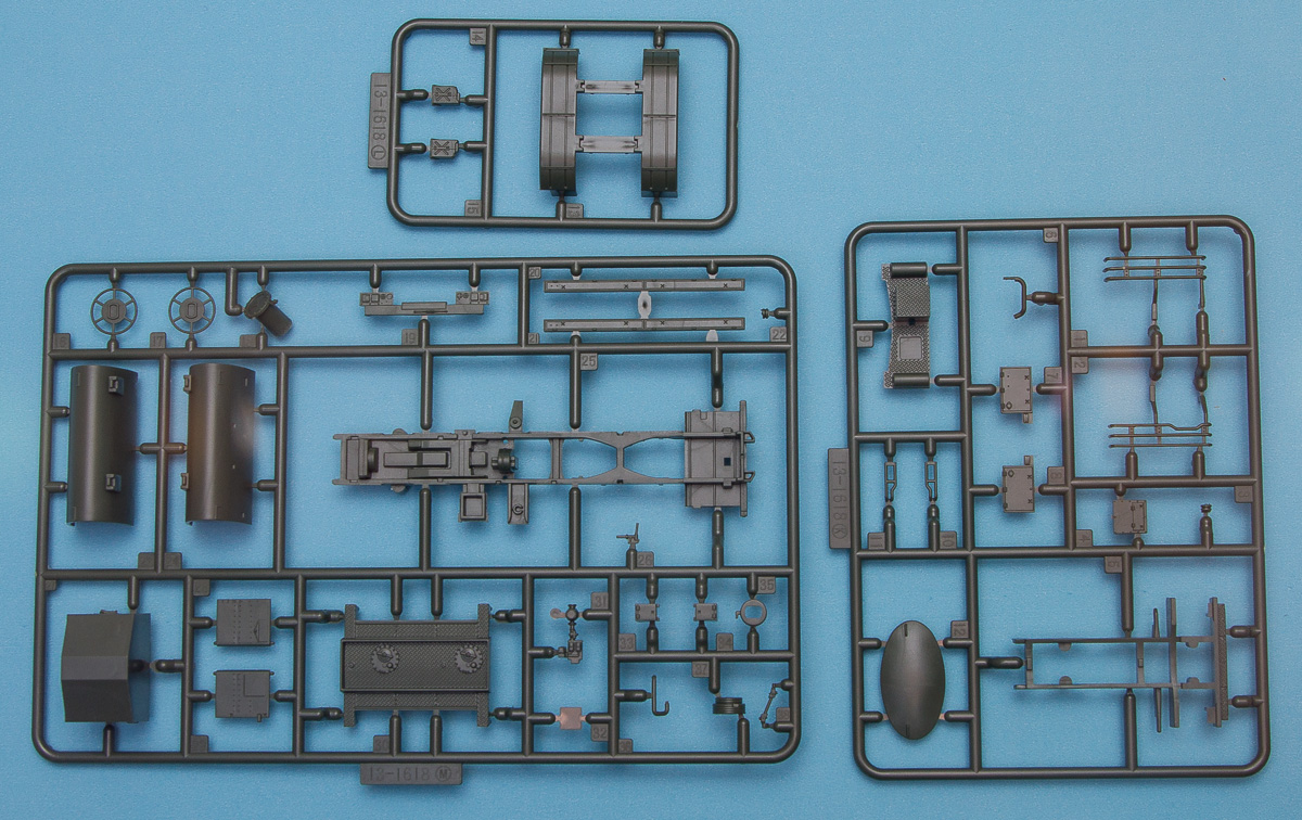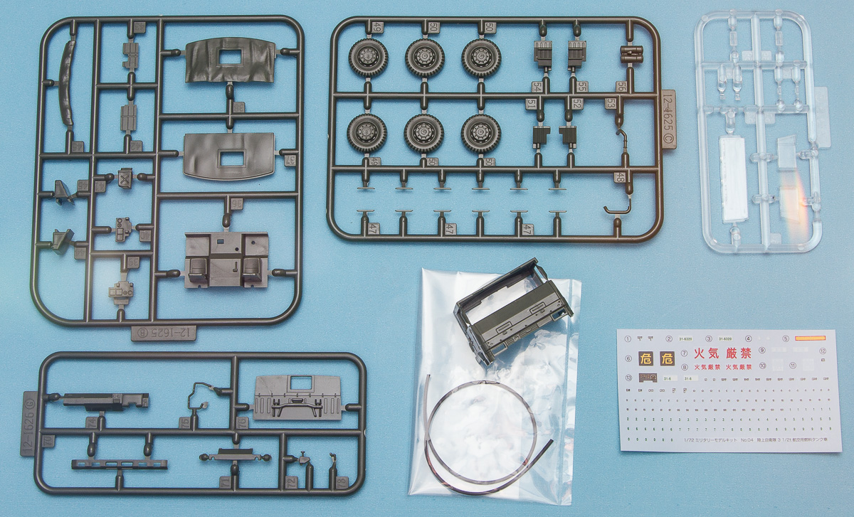 Aoshima has been capitalizing on the commonality of the Type 73 truck, having released at least four other versions prior to this one. The first version was the standard cargo truck, released in 2012, and since then the releases have covered both the New Type and the older Early/Improved types. This latest release covers the New Type Aviation Fuel Truck and comes molded in a dark green plastic. As there are lots of common parts, there are quite a few parts here that will end up in the spares box. In fact, I think you might have all the parts to build the standard cargo truck, if for some reason the fuel truck no longer appeals to you.