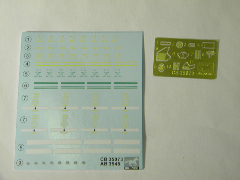 First and foremost, allow me to give a round of applause to the folks at Bronco on an exceptional model kit. Now, you may ask why I would say that, well, Bronco’s new M1A1 howitzer is nothing short of a modeling masterpiece of engineering. The kit comes on eight sprues of olive drab colored plastic. Also included are decals and a small fret of photo-etched parts. The parts are clean and well molded with a high level of detail and little to no flash or mold errors. The instructions feature large, clear, and easy to read diagrams showing construction of the gun and then the carriage. Areas to avoid gluing are clearly marked, and optional assemblies such as the open breech are shown in red while PE parts are shown in orange.