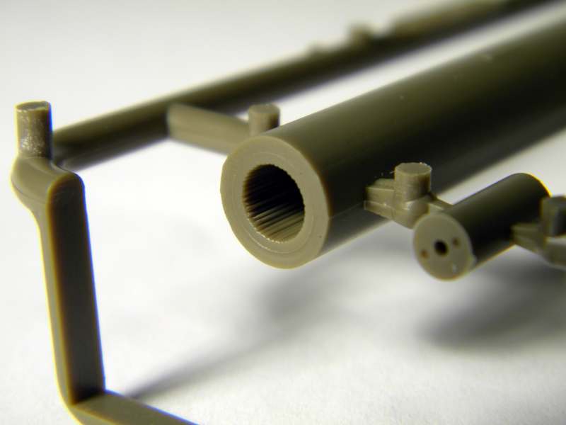 Now, as to that comment made earlier, there are a couple points of detail worth mentioning on this model. First is a slide molded barrel featuring full rifling extending ½ inch down the barrel from the muzzle. The rifling is very well done, although I couldn’t tell if it had the proper twist. Also of note are the multi-piece wheels/tires. The tires are made from slices, which allow for greater detail while nearly eliminating any damage to the tread from the sprue attachment.