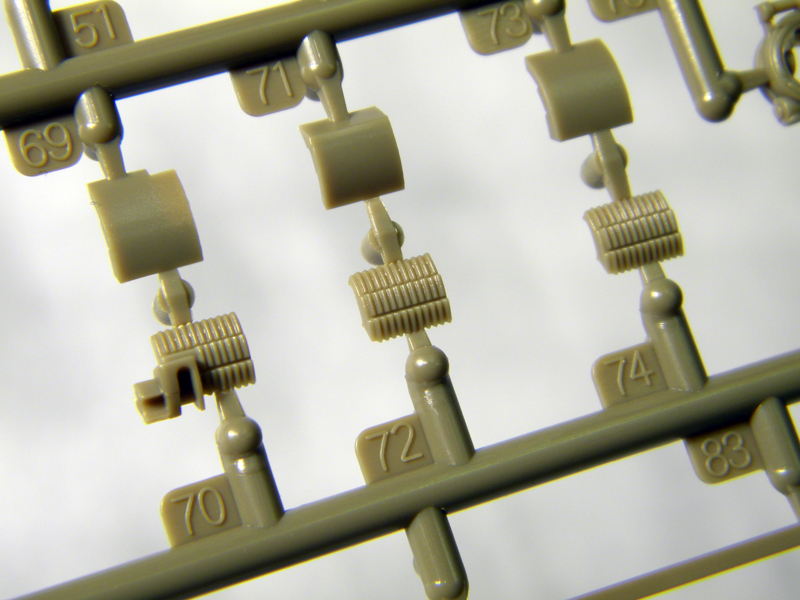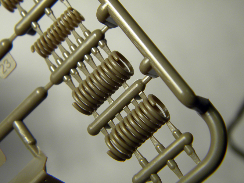 Lastly, and this is the best yet, Bronco has used slide mold technology to create plastic springs for the elevation assist springs. The coil-over-coil system features inner and outer spring coils that are molded “open” thanks to slide molding. With almost no clean up, the springs are far better than anything done with bent brass, solder, stretched sprue, or an actual spring.