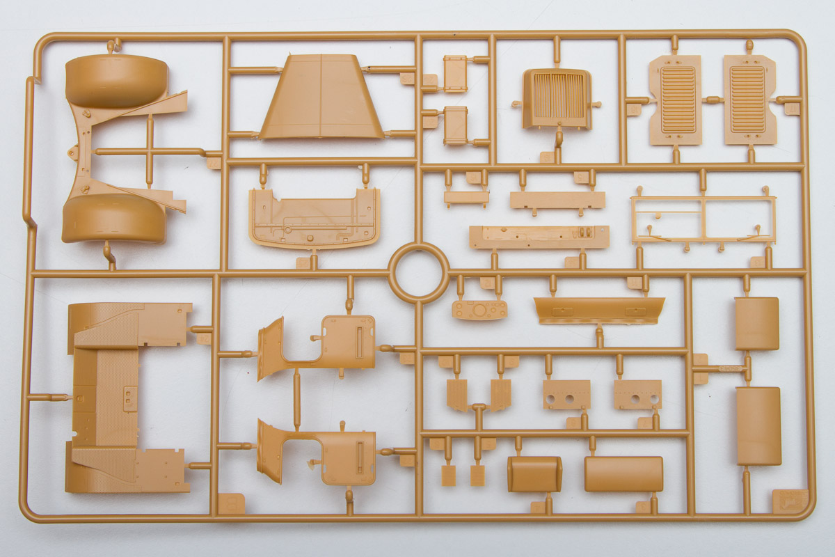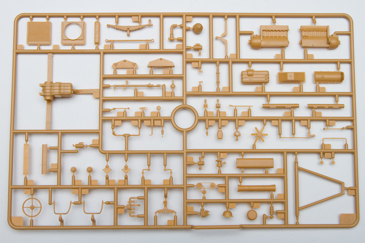 I have to say, if a modeler decided to close the engine compartment and not let anyone pick the model up and look at its underside (think diorama here), he or she could leave, oh, let's say, 50% of the parts in the box. That said; however, let's look at what's inside.