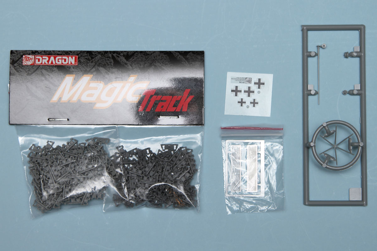 For those familiar with Dragon's 1/35 Panzer III kit, there won't be much new here, as this is a derivative kit. It comes molded in light gray plastic, with excellent surface detailing and includes a bonus set of German tank crew figures. There is a small fret of photoetch and an even smaller decal sheet with markings for one vehicle. Finally, there are 216 individual track links in the MagicTrack system included.