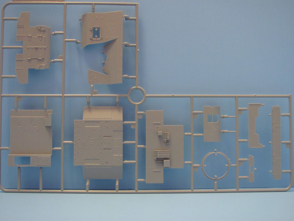 The kit comes in the standard dragon box and contains about 270 parts on 10 light gray sprues. Also included in the kit is a small PE fret for the engine grilles, an aluminum barrel, a metal tow cable and a sprue of clear parts as well as a set of DS-tracks. The decal sheet is printed by Cartograph and provides markings for 6 different vehicles. As we got to expect from Dragon, the parts are very nicely detailed with no visible flash or ejector pin marks. The barrel for the .50 cal is slide-molded as is the recoil spring.