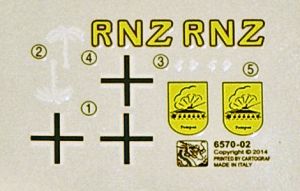 The kit comes with four color schemes represented with blue-and-white ink three-view drawings, and a small (but perfectly registered) sheet of decals from Cartograph of Italy. These units include: