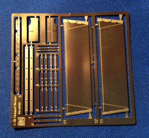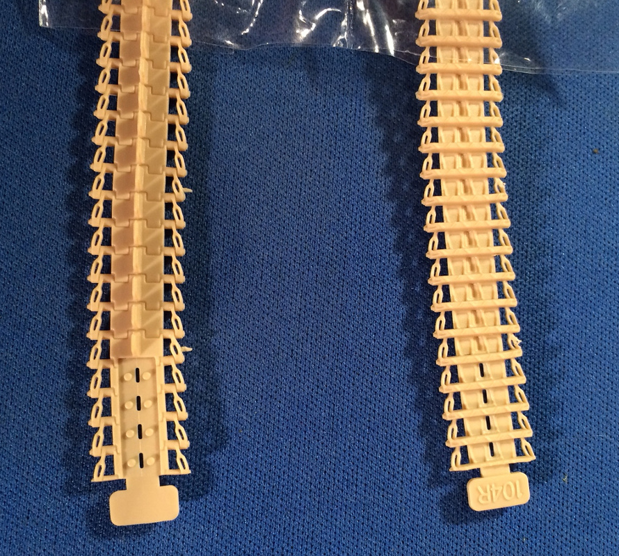 To enhance the styrene, there has been a well thought out incorporation of other materials. The tracks are in a soft brown, vinyl material. It will look the part, and like the styrene plastic there is a high degree of finesse with delicate details. Both sides of the tracks are equally well molded, so the underside will look good too. There is an air hose to be used with two molded styrene ends to make a tow cable. The photo-etch is sparingly, but very effectively used for some stowage bins and hinges. I appreciate the thinness for the stowage bins and the hinges are excellent. They add a lot of detail without excessive complication. Overall the use of materials is well thought out and is an excellent enhancement to the finished model.