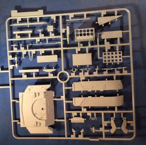 There is a clear sprue that is actually more extensive than I would have expected in an armour kit, especially a vehicle of this vintage. Dragon molded entire parts such as the gun sight and crew view ports in clear plastic, with the idea that you mask the parts that need to be transparent and paint the rest, rather than giving you a bunch of tiny little lenses and such that are impossible to install without making a mess.