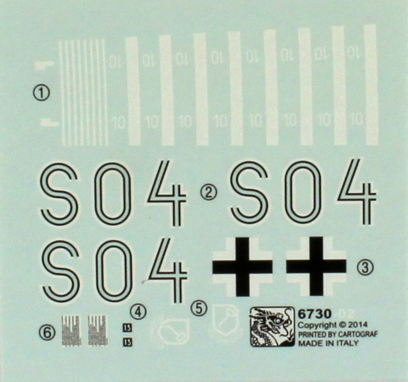 The kit comes with two color schemes represented, using blue and white ink, three view drawings. A small, but perfectly registered, sheet of decals from Cartograph of Italy includes the following units: