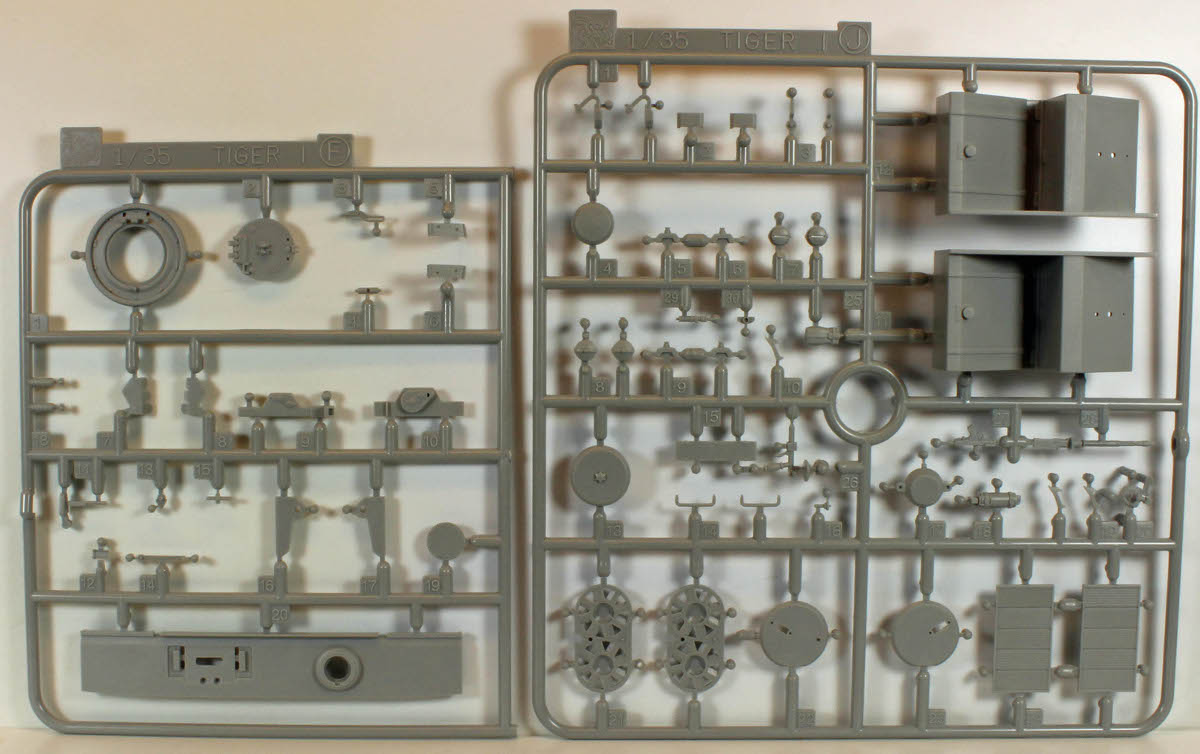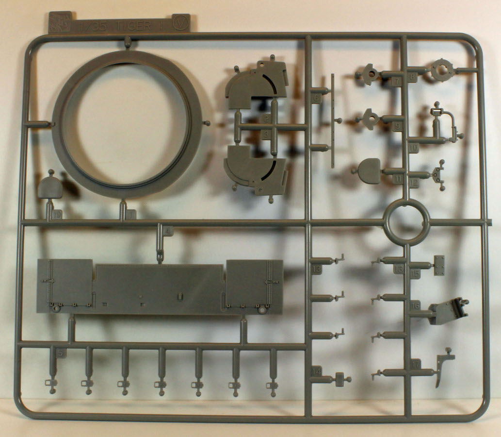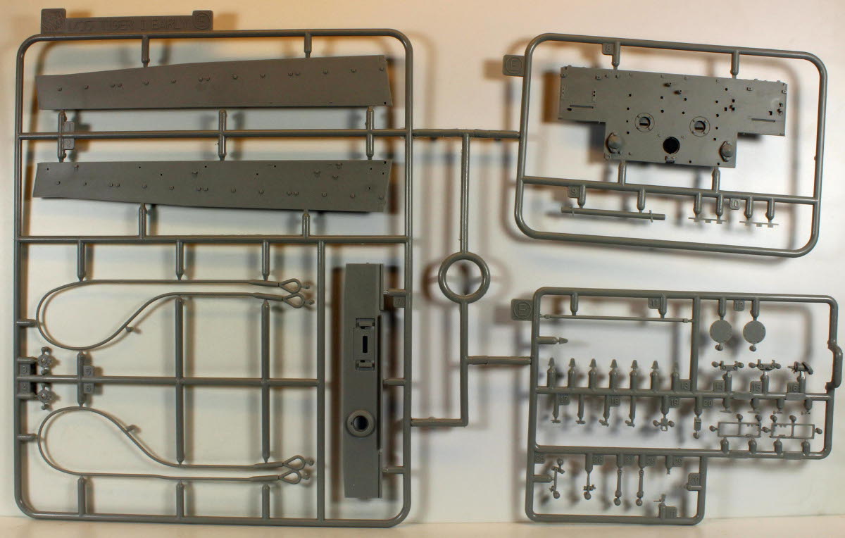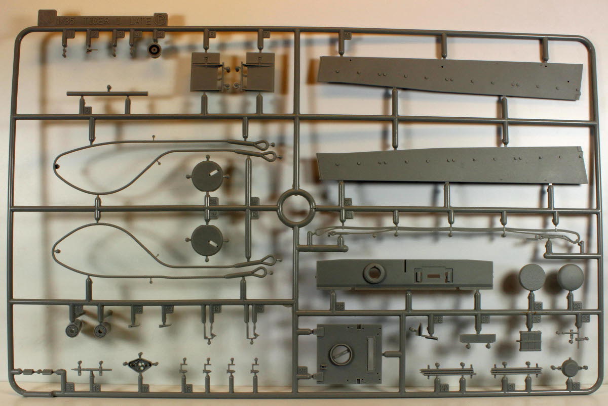 All of Dragon's Tigers come with enough parts to completely fill a sturdy box and then some. There are extra parts on nearly every sprue for your stash, including pioneer tools, a barrel, tow ropes, smoke dischargers, road lights, etc, etc., etc..