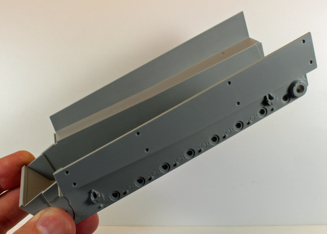 At the other end of the spectrum the design and engineering of the interleaved wheels and hull structure is brilliant. Everything fits perfectly and fits only one way. When you're done, the hull feels solid and heavy. This is a Tiger!![]()