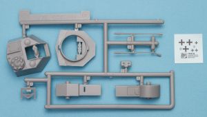As this is a vehicle that never existed on the battlefield, the colors and markings are purely conjectural. The instructions show two possible schemes, both of which place the cross on the forward hull. For those who want to be more realistic, a wooden mockup of the 5.5cm turret was built on a Panther D hull, so you could paint the turret up in wood.