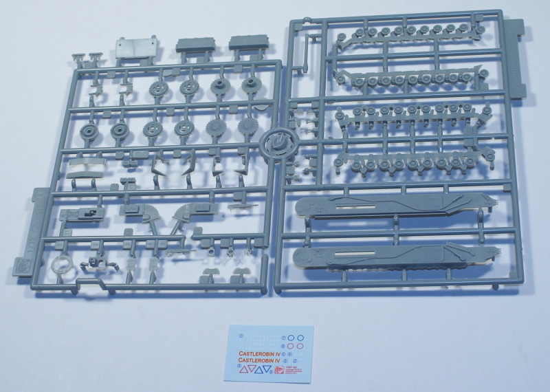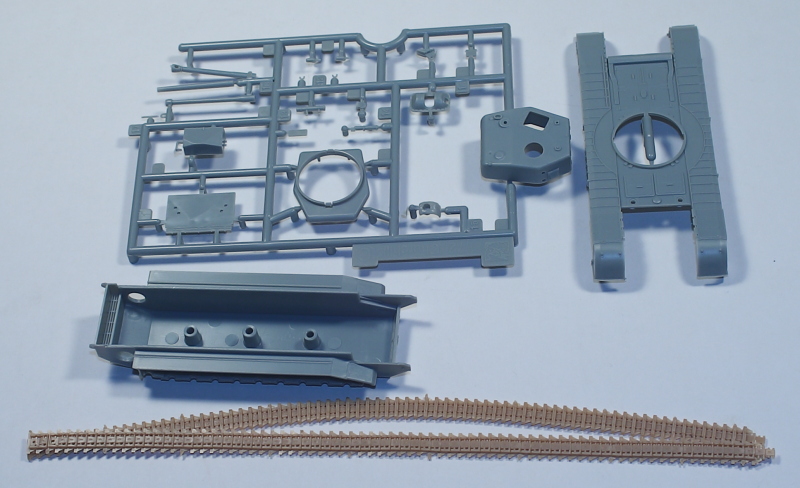 This model shouldn't take long to assemble; where it will probably slow down is in how you weather it. Construction first states with gluing the turret together, adding all pieces until complete. The second instruction step is gluing the lower hull together, including the two-piece (for each side) running gear. The wheel assembly is separate from the spring assembly, and once all together then that is glued to the lower hull. The only other separate pieces are the drive sprockets and idler wheel. Plus you'll need to add the front glacis to the assembly as well.