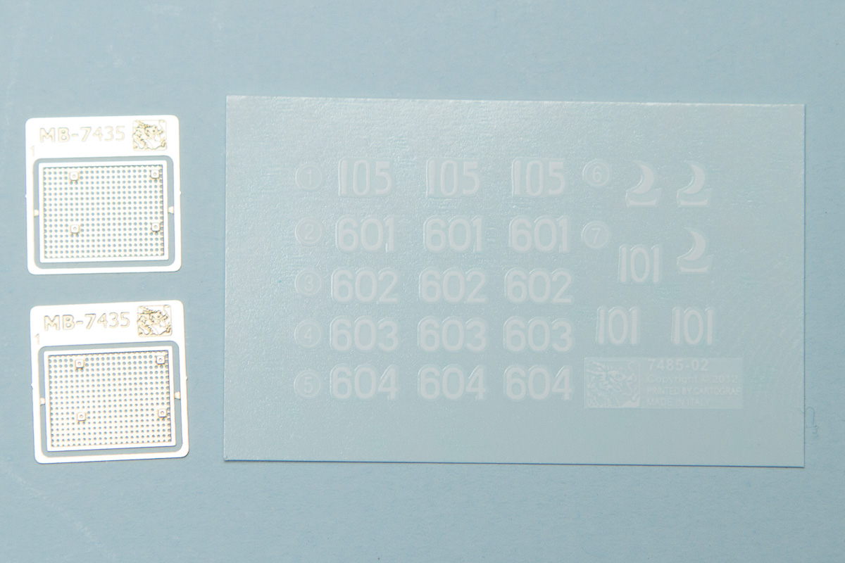 Of course, the reason for getting this kit is to have that interesting flotation gear, so to build up the Type 2 Ka-Mi with all of that, you'll be adding a front and rear assembly. Both of these have a one-piece lower section with separate top decks. The forward piece also has a bit of railing, while the rear has some other added details. There is also a three-piece engine intake cover, and a three-piece cupola extension for the turret.