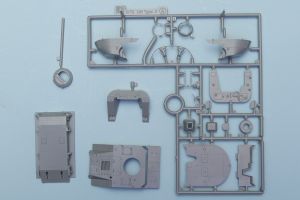 Construction is fairly straightforward, with the one-piece lower hull needing only the running gear and screws to complete. The suspension is made up from separate inner and outer road wheels, as are the drive and idler wheels. The screws have separate shafts, with the blades separate. Once the lower hull is finished, the large one-piece upper hull can be attached, with a separate front piece completing the major hull assembly.