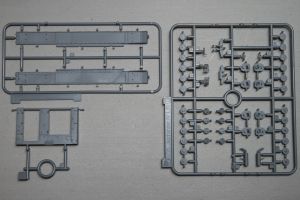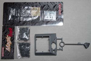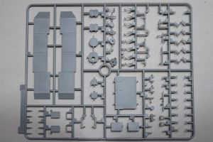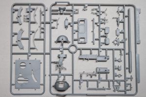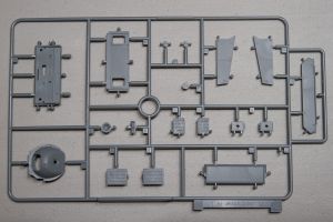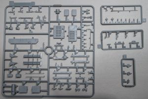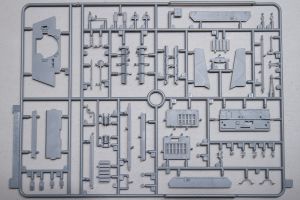 A beautifully-molded radio set is mounted against the inner wall of a bulkhead located aft. Otherwise the bulkhead is a barren piece of plastic. I assume you will be able to see the radio through an open hatch somewhere. If that’s the case, you might want to beef-up the rest of the bulkhead a little as well with parts from the spares box.