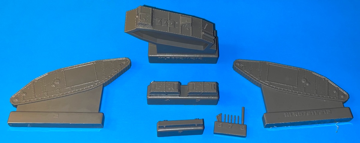 This kit will be an easy build. The main hull is a single piece and the tracks as part of the hull sides. The gun sponsons attach to the hull sides, and the 4 machine gun barrels are glued to the sponsons. The resin quality is first class. The tracks are finely detailed and will look quite convincing with appropriate weathering. The hull and sides both have subtle in-scale rivet detail. The tiny gun barrels are superbly done.