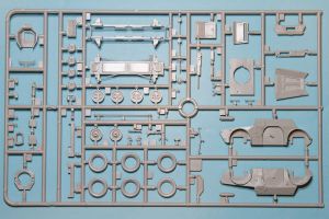 Moving on to the body, this is made up of twelve main panels. Now I understand that this is pretty much required due to the complex shape of the car, but the manner that Italeri did this makes assembly a snap for someone with four arms and six hands. The contact points between all of these parts is nothing more than the edge upon which they connect. There is no supporting shelves, locating pegs, or any of the usual items you might expect. In fact, the only pegs provided are the two spacers that are used to keep the sides properly distanced from one another, and these are fiddly at best.