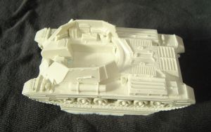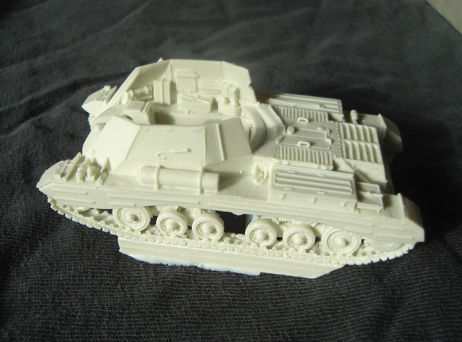 You gotta love a tank that goes faster in reverse than forward. Here is the 1/76 Milicast resin Archer Tank Destroyer. Based on the Valentine Infantry support tank, the Archer made use of the excellent 17pdr gun which was far too big to fit into the existing turret (Valentine normally carried either a 2pdr or 6pdr gun). The solution was to remove the turret and mount it directly to the hull. To prevent it from being too long and unmanageble, it was fitted to fire to the rear of the Archer. The driver sat directly behind the breech, so he had to vacate his seat whenever it was fired. Consequently, it looks like it is backwards when you see one in World of Tanks - but it is fun.