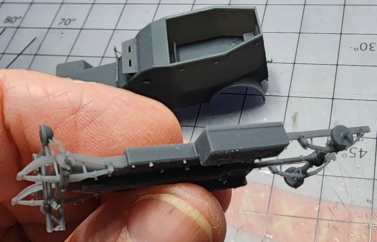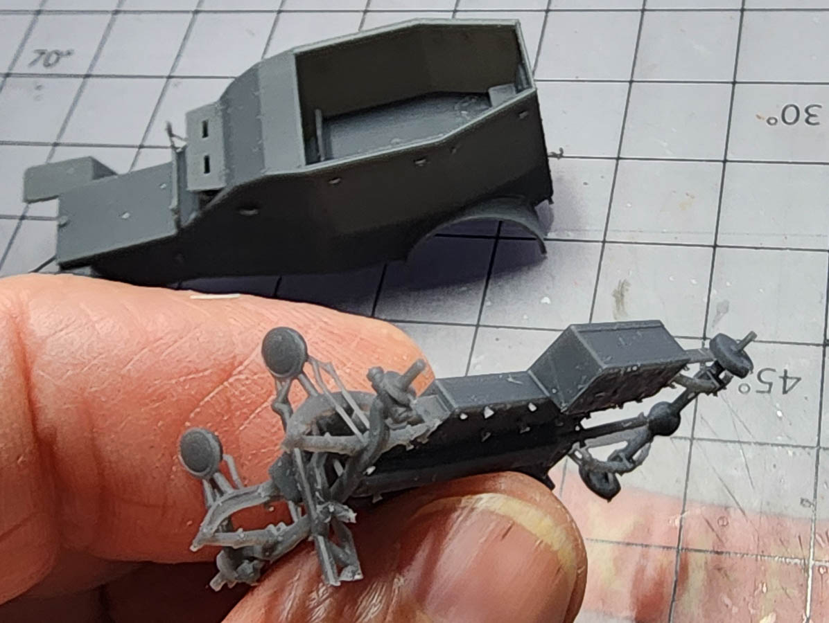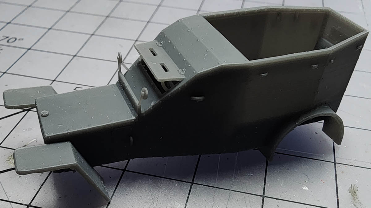 The level of detail is stunning. Military Scales printed an entire driver's compartment with gear shift, steering wheel, seat, etc. How to get in there to paint, though, is an entire other matter. The back of the body looks good, but based on the above mentioned book there could be more added to it. To be fair to Military Scales, though, unless you have access to this book, you probably wouldn't know that. But still, even with what the book provides Military Scales has done an excellent job of rendering the Peugeot.