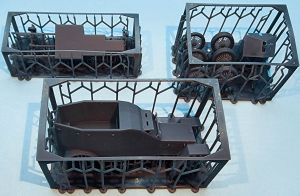 The Military Scales 1/72 Peugeot 1918 consists of nine pieces of 3D printed resin: the one-piece main body; the one-piece chassis; the one piece gun and shield "turret"; and six wheels (three front, three back, an extra of each position "just in case", or to be used as a carried-"spare"). There are no markings, no decals, and no instructions. But with so few parts, and everything being obvious, instructions aren't needed.