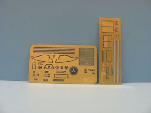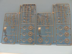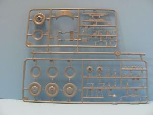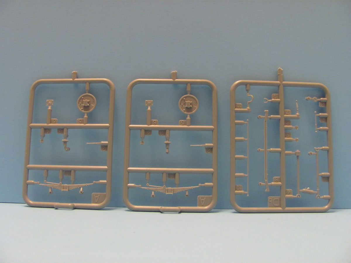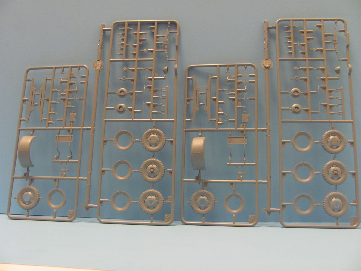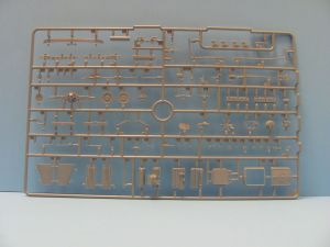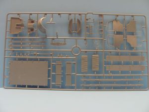 This kit comes with 11 light grey sprues, 1 clear sprue, 2 PE Frets, the cab and a small decal sheet. My part count came up to be 396 parts in total. The detail is very nice and crisp. I did not notice any visible flash. Mold parting lines are minimal with the exception of the accessories which have more visible lines but which shouldn’t be a problem to clean up. The PE frets are protected on both sides by an adhesive foil.