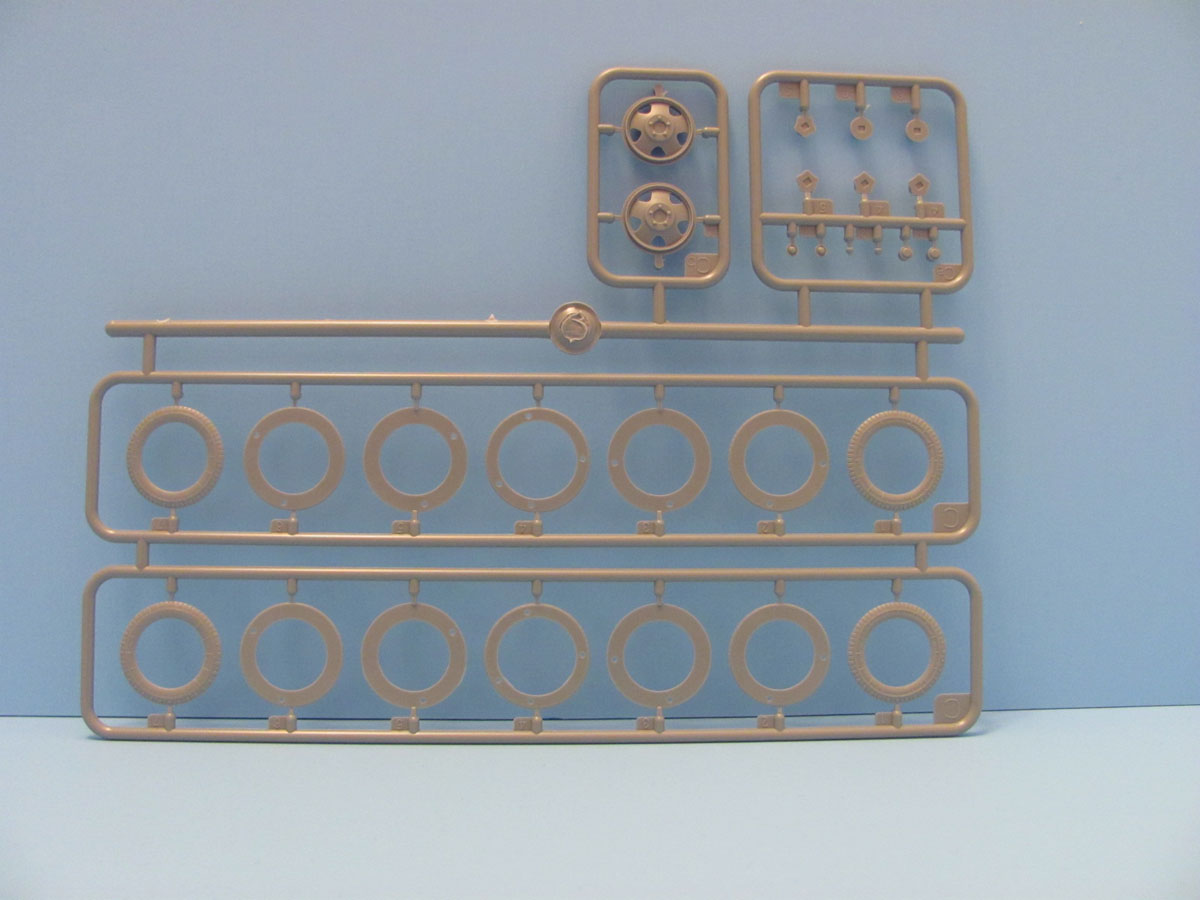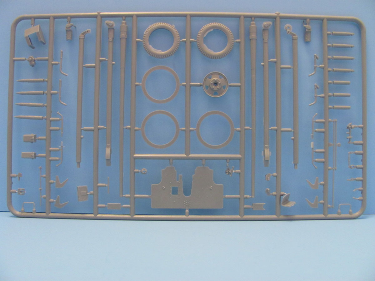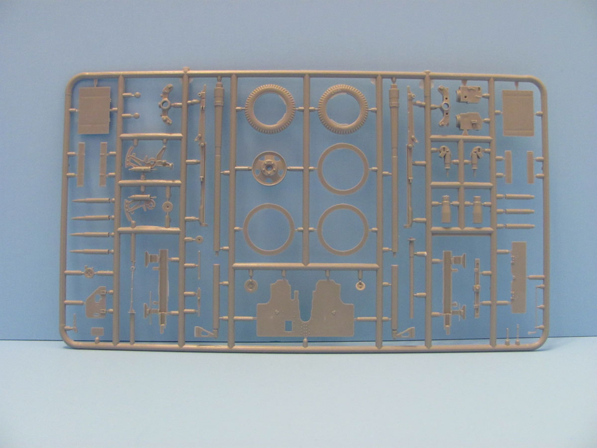 The gun comes on 3 sprues with about 75% of the total part count. While one sprue has the parts numbered, the other two are not. The detail is good but again there is flash and mold parting lines that need to be dealt with. A nice touch are the wheels that come as several discs. There are also several AP and HE rounds as well as some shell casings which are not slide molded and therefore either need to be drilled out or replaced by Aftermarket parts. Also included is a wooden ammo crate.