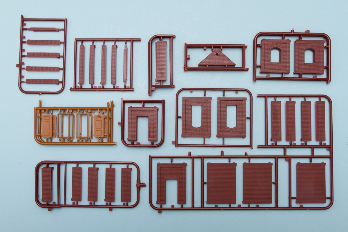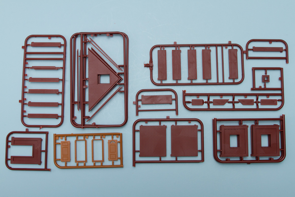 For those familiar with MiniArt's high quality 1/35 diorama buildings, their 1/72 offerings will truly be ones to envy. Unlike those larger scale buildings, the 1/72 examples are fully injection molded, so there is no vacuform parts to cut out. They have been quite prolific in their releases as of late, too, with no less than five buildings showing up on our doorstep. The parts in each of these are identical, as the overall concept is to create a modular system that can easily adapt to any number of building shape and design. This means that, with a good selection of pieces, one could also come up with their own custom design, should they so wish.