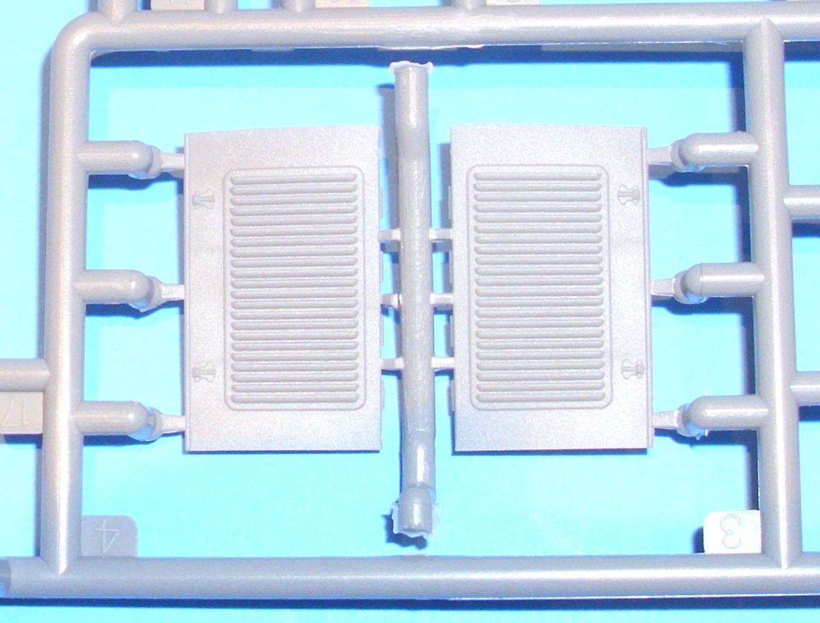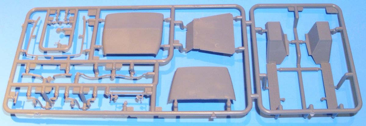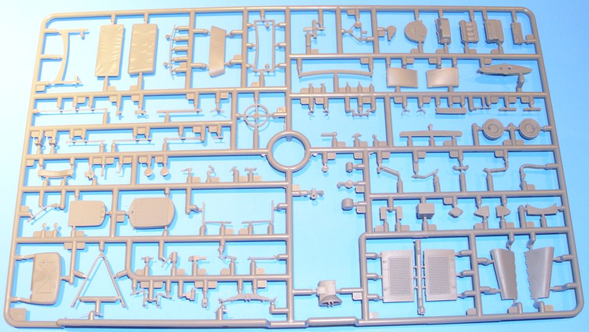 The brake and clutch pedal go through the floorboard and attach to their respective linkages on the frame. The seats have convincing fold and wrinkle detail, and everything that belongs in the spartan interior is there. Practically all pieces that were separate on the vehicle are separate in the kit, and in some cases very petite. Thus some care should be taken when detaching these items from the sprue, cleaning them up, and handling them.