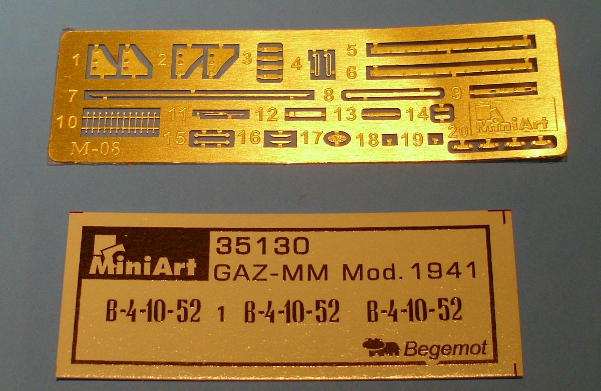 The windows and headlamp lense provided are thin and clear. The decal sheet, by Begemot, is a small one, containing the codes for one of the three recommended camouflage schemes.