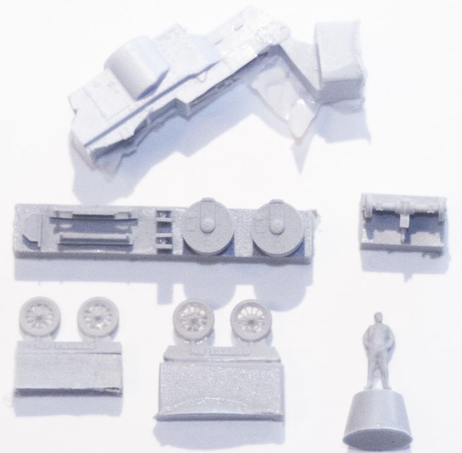 The Northstar Models 1/144 Austin-Putilov consists of 13 pieces of resin for the armored car, and this particular release also includes a resin figure of Vladimir Lenin (whom, I hope, needs no introduction). The casting is flawless and the build will go quickly. Thankfully Northstar arranged the pour block for the main body part smartly: it's at the front, underside of the body, which not only results in excellent under-carriage detail, but also means a smaller spot that will need to be cleaned up once the pour block is removed. The Brengun Russo-Balt's body pour block is along the entire underside, which results in no under-carriage detail, a more difficult pour block removal, and much more to clean up. Sure, you can argue that if you mount the model on a base the underside won't be seen, but it would have been nice to have a smaller area of the pour block so removal won't be so difficult.