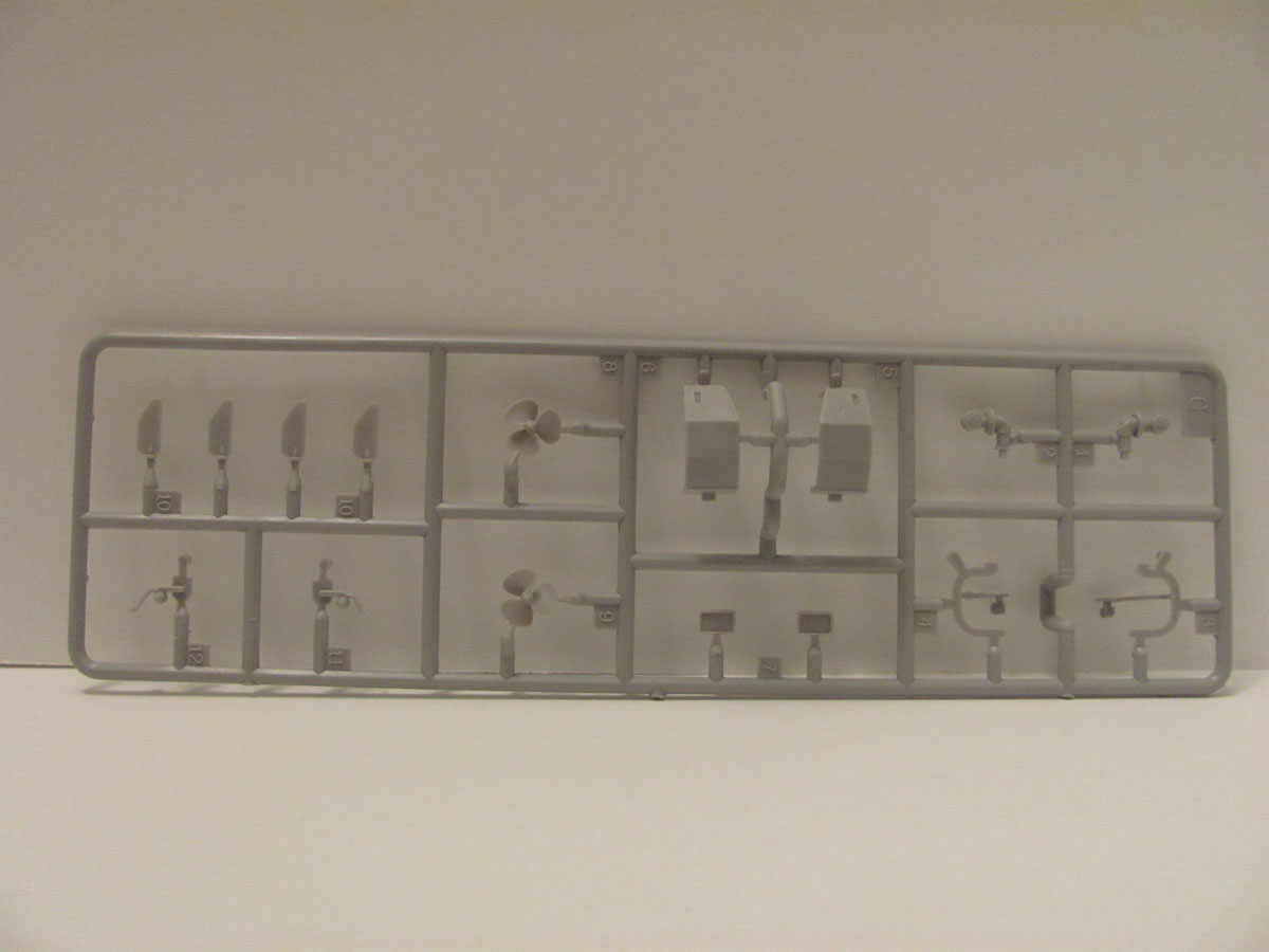 When opening the box you will find 6 light gray sprues, 1 clear sprue, 6 vinyl tires, A small PE Fret and the lower and upper hull halves. Decals are provided for 2 versions. One is for a Canadian vehicle during the IFOR mission in former Yugoslavia and one for a white Canadian UN vehicle. All parts are very nicely molded with crisp detail. Several of the parts were wrapped in some foam sheets. There are no visible mold seems. No injector marks appear to be in visible places. Unfortunately, the barrel of the 7.62mm MG was broken in half in this review kit. There is also no interior provided in this kit. But I am sure soon Aftermarket kits for this model will hit the stores.
