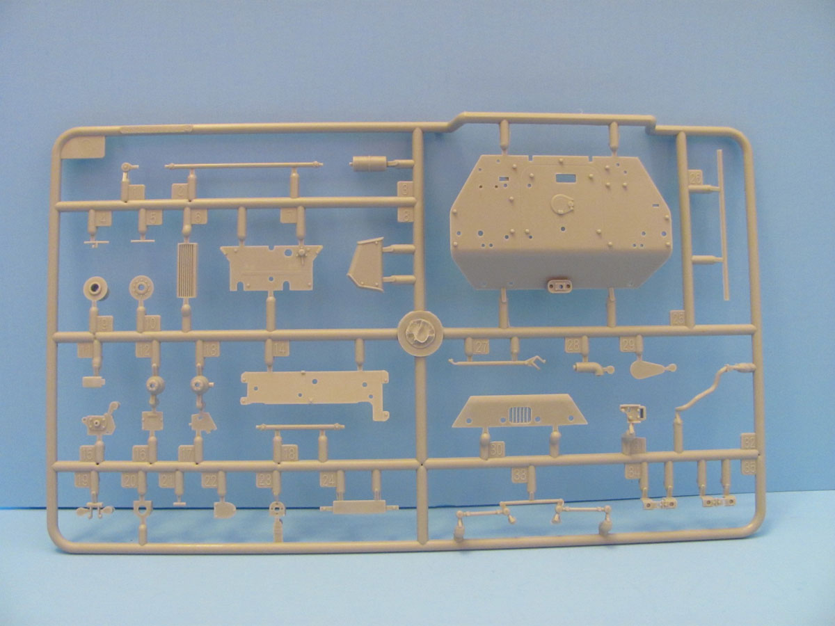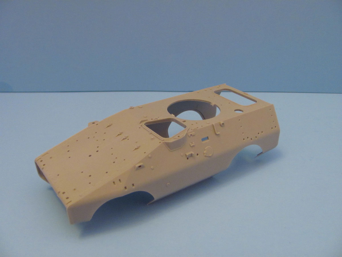 Next in the assembly process is the rear body plate followed by adding a bunch of small parts to the body including tools, cable cutter, smoke granate dischargers, hatches, tow shackles etc.