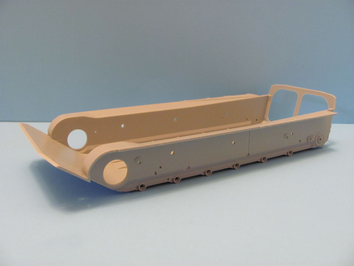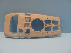 The PE-fret contains part or some brackets, engine grills, exhaust louvers and the search light mount as well as braces for the insides of the idler wheels.