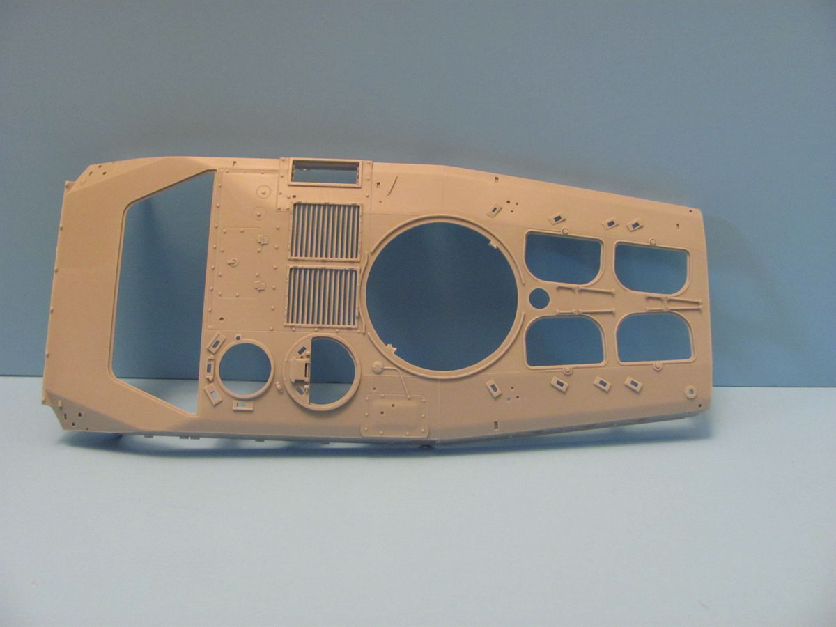 The clear parts provided are for the head light lenses and the periscopes for the commander and the troop compartment. The periscopes are in one piece and need to be mask of before painting.