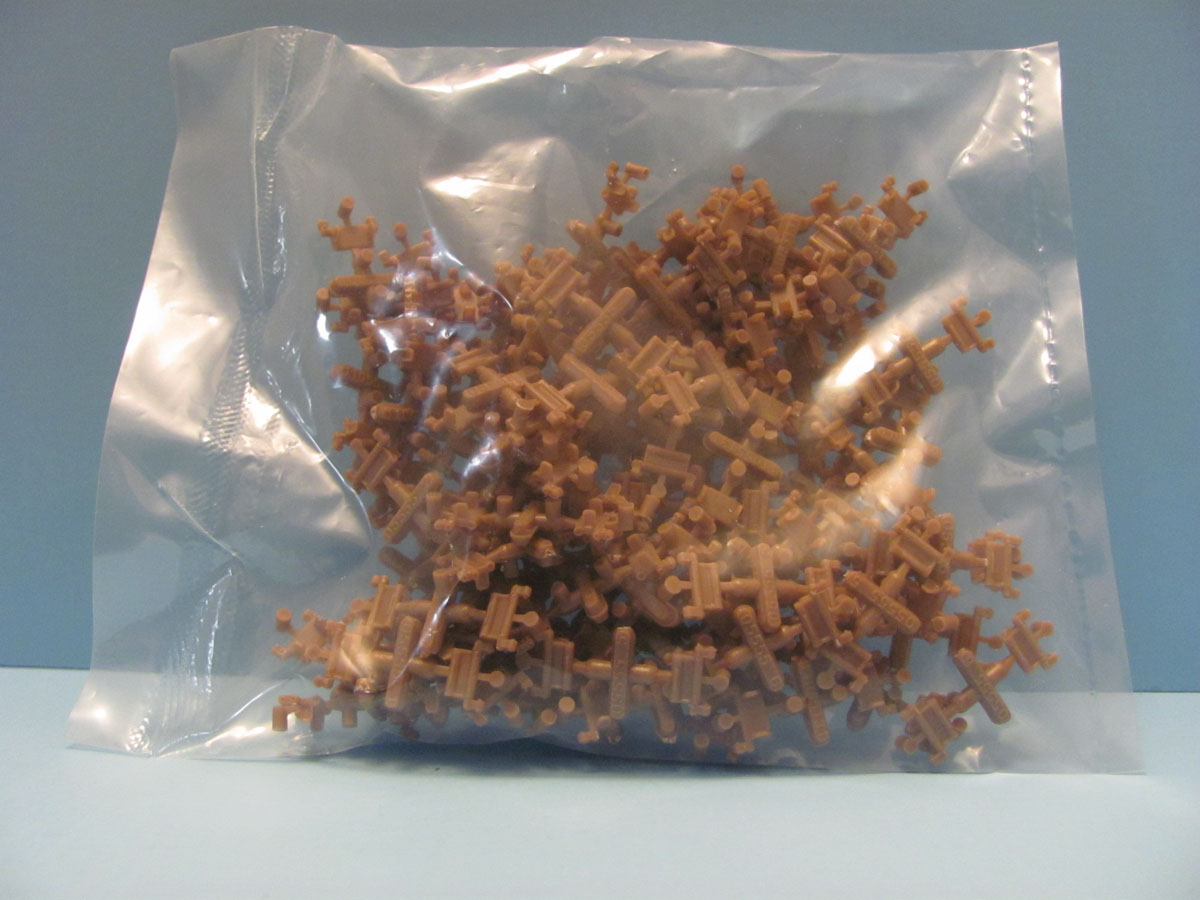 The light brown tracks come with two links connected by a small piece of sprue. So, some cleaning up is in order. The tracks are workable and only need to be snapped together.