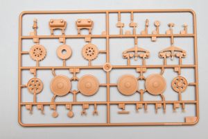 The instructions say to carefully shave off every other molded rivet from each wheel. Checking photographs and images from two sources (MBI’s excellent PRAGA LT vz.38 Pz.Kpfw. 38(t) book and their equally impressive Hetzer JagdPanzer 38 book), the rivet counts are indeed different. The early variant sported 32 rivets and the later models (starting in 1944) reduced this count by half. Whether this was an attempt to simplify production and cut costs, or was due to some other requirement would require more research. Regardless, since this is the later model, the rivets should come off.