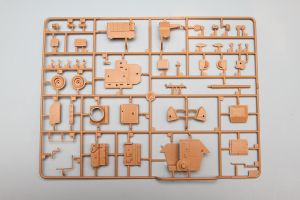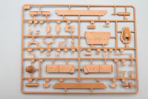 The flat, rear surfaces of the upper hull that receive all the external detail, such as the pioneer tools and boxes, etc, go on next. Interestingly, the 7-piece jack is assembled following a completely new design, even from the earlier 38(t) kit. Just about every German AFV carries this jack, yet I can’t remember two of them using the same modeling design.