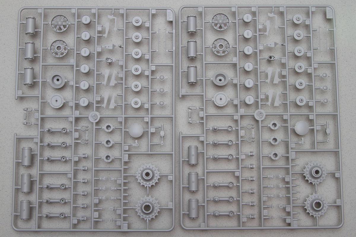 Trumpeter has included link-by-link track with the KV-1S, which comes 16 links to a sprue across 12 sprues. Each link has four relatively heavy attachment points which need to be cleaned thoroughly. Math: 12x16x4 = 768.